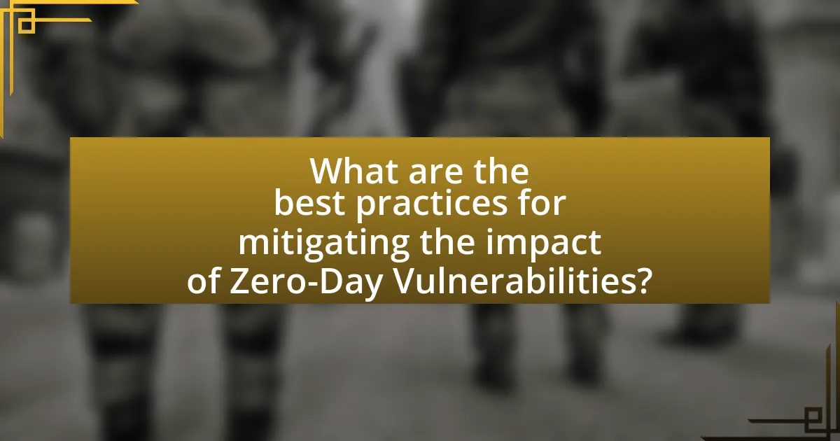 The best practices for mitigating the impact of Zero-Day Vulnerabilities include implementing a robust patch management process, utilizing intrusion detection systems, and conducting regular security assessments. A robust patch management process ensures that software updates are applied promptly, reducing the window of opportunity for exploitation. Intrusion detection systems monitor network traffic for suspicious activity, allowing for early detection of potential breaches. Regular security assessments, including penetration testing, help identify vulnerabilities before they can be exploited. According to a report by the Ponemon Institute, organizations that implement these practices can reduce the average time to detect a breach by 50%, significantly minimizing the impact of Zero-Day Vulnerabilities.